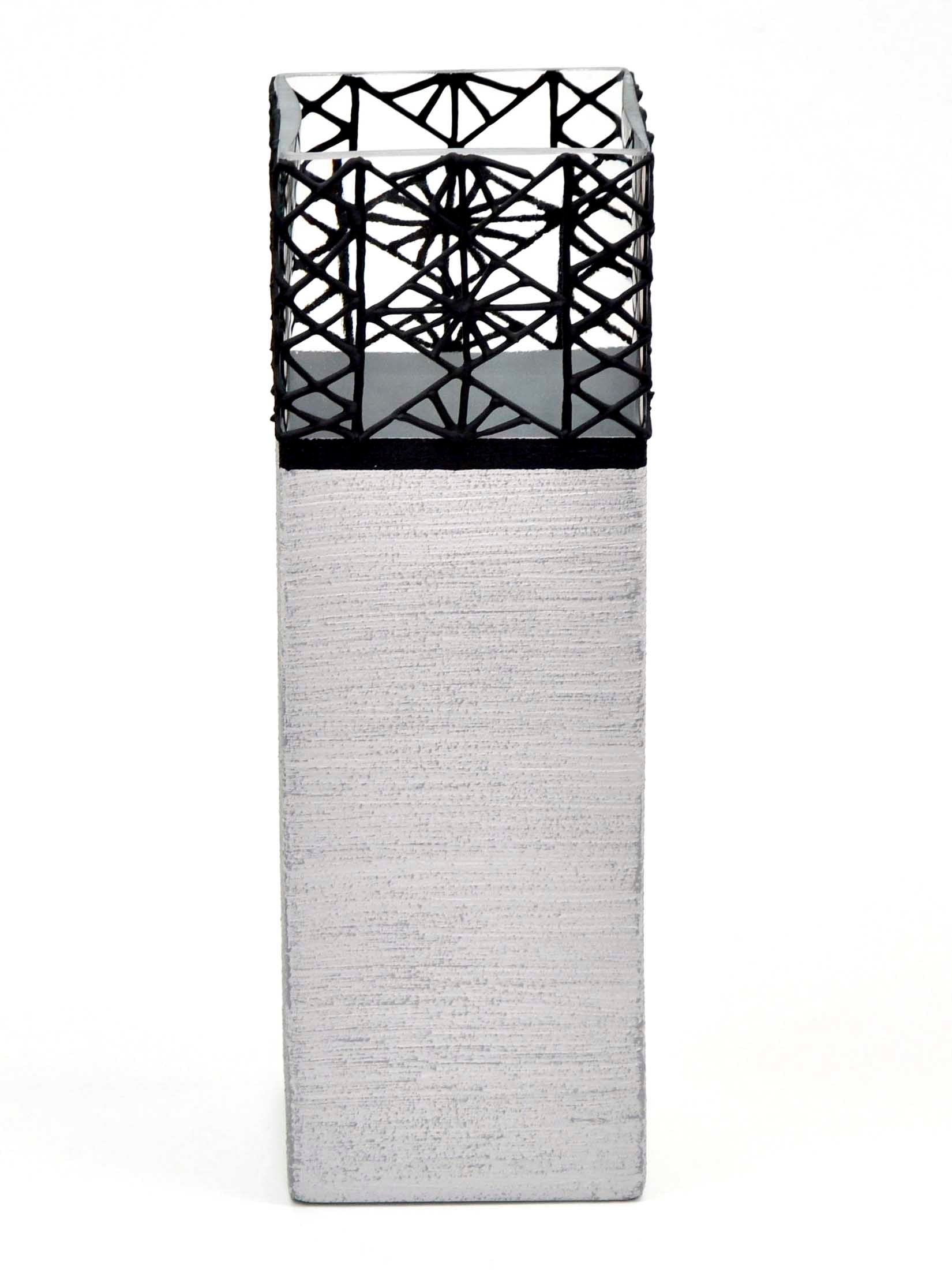 Grey Stone Glass Vase | Square vase | Art Decorated Glass Vase for flowers | Table vase 12 inch | Interior Design | Home Decor | 6360/300/sh186.1